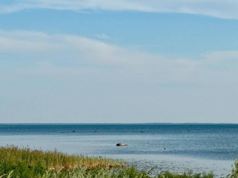 Teel Kõrgelaiule on suur tõenäosus saada pisut külglainet. See on kuidagi juba nii paika pandud, et pisut loksutamist peab alati saama. Aga õrnalt 🙂 Sõltub tuule suunast, möödume Vareslaiust. Ühtäkki aga näeme hülgeid. Üks nupp püsti, seejärel teine, tuleb lähemale, on kaugemal, igas suunas nupud veest väljas. Ja nad on väga uudishimulikud. Mõned tulevad lausa 50-60m kaugusele, ajavad end veest ikka väga kõrgele välja ja vaatavad, mis inimesi neile seekord on vaatamiseks toodud. Kindlasti peavad peenikest hülgenaeru ka kui õnnelikke matkajaid vee peal näevad 🙂 Aga olgu, hülged vaadatud, lähme edasi.