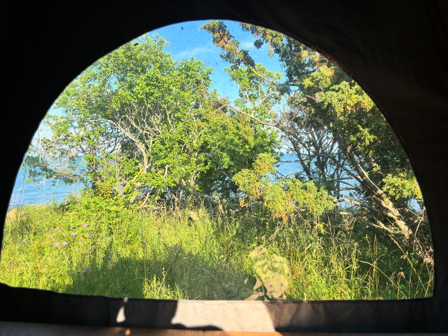 Olgu, aitab kormoranidest. Me jõudsime laagriplatsile Kõrgelaiul. Varustus kenasti kaldal, jagame laiali telgid, madratsid ja magamiskotid, igaüks saab valida iseendale sobivaima telgikoha kaunite kadakate all. Kui see on tehtud, siis sätime üles telksauna ja hakkame õhtusööki valmistama. Seekord tegime mõlemal korral maitsva läätsepada, kõrvale sai võtta veel hirvekonservi ja leiba, mis tol hetkel tunduvad maailma kõige uhkemad maitseelamused, kuid tegelikult nii ongi! Niipea, kui konservid avada pärast päikselist ja pikka päeva, on näha, kuidas kõikidel silmad löövad särama ja isu aina kerkib 🙂 Sööme õhtusöögi vaikselt ära, jutustame lõkke ääres ja lähme ka Kõrgelaiu ringkäigule. Vaatame meeletult pikkasid kadakaid (tõesõna, nii pikkasid kadakaid pole mina veel kuskil kohanud), vaatame üle kunagise kõrtsi koha ning sammume päikse suunas, edasi laiu tipu poole. Lahesopis käib tringel-trangel, säinaparved sulistavad, ajavad üksteist taga, taustaks kaunis päikeseloojang ja tore seltskond. Aga see pole veel kõik!